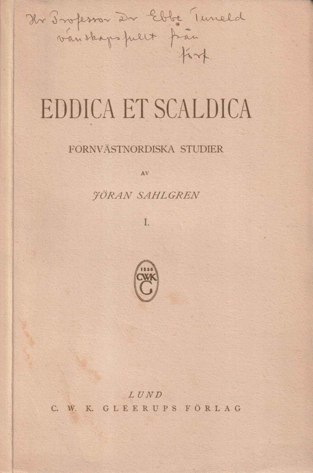 Eddica et scaldica. Fornvästnordiska studier av Jöran sahlgren. I. [Utg. av] C.W.K. Gleerups förlag.