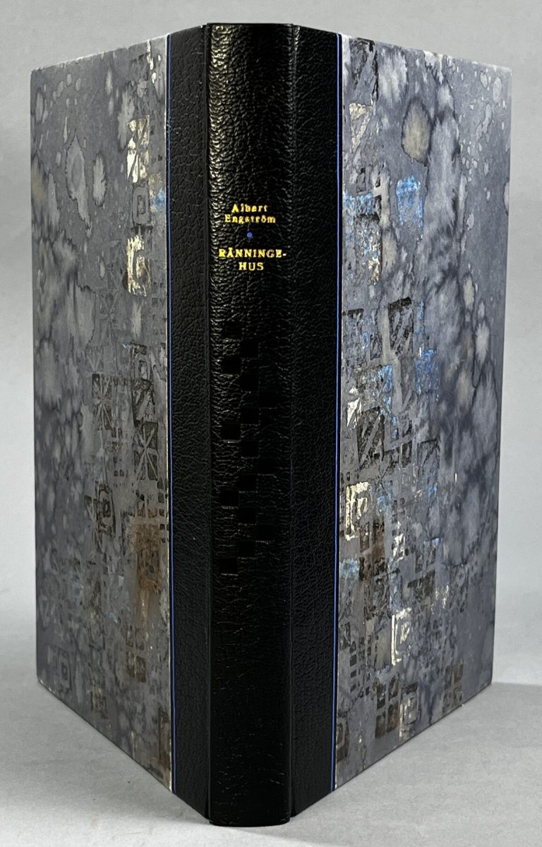 Stockholm, Alb. Bonniers Boktryckeri, 1916. 8:o. Frontespis, 112 s., (7) pl.-bl. Illustrerad. Mörkgrönt skinnband i jugendstil med fem upphöjda bind, blidpressad ryggtitel & pärmdekor. Främre omslag medbundet. Helt guldsnitt. Lätt nött och kraftigt solblekt rygg samt främre pärm. Bakre pärm med den gröna färgen i behåll. Ägarnotering ’Siri Åhström’ på det medbundna främre omslaget.