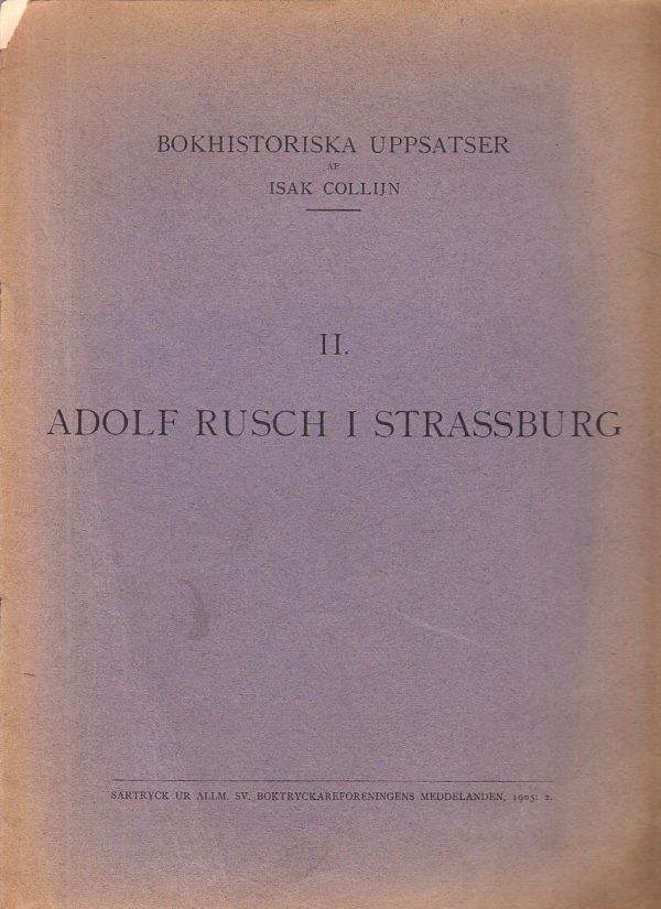 View cart “Adolf Rusch i Strassburg, tryckaren med det bisarra R. [Ett referat och en förteckning på Rusch-tryck i svenska offentliga bibliotek].” has been added to your cart.