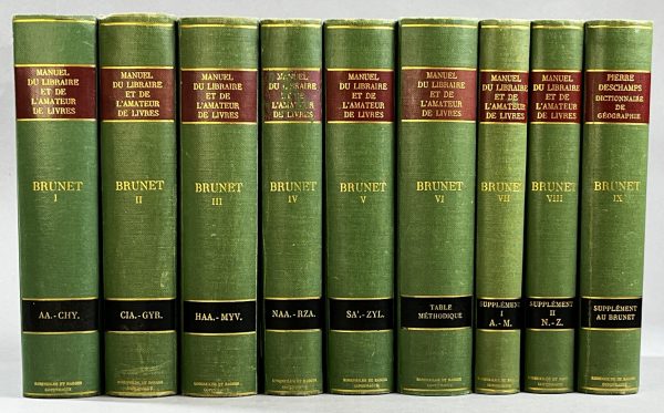 View cart “Manuel du libraire et de l’amateur de livres. Tome I. Aa. - Chytræus. [... II. Ciacconius - Gyron; ... III. Haag - Myvyrian; ... IV. Naasefe - Rzaczynski; ... V. Sa’ - Zyl; ... VI. Table méthodique notice des journaux; ... VII. Supplément. Tome I. A-M; ... VIII. Supplément. Tome II. N-Z; ... IX. Dictionnaire de Géographie ancienne et moderne].” has been added to your cart.