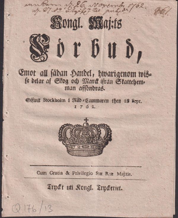 View cart “Sweriges rikes ständers beslut, giordt, samtyckt och förafskedadt på then allmänna riks-dagen, som slöts i Stockholm then 26 januarii 1779.” has been added to your cart.