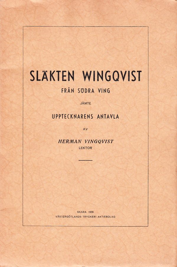 View cart “Släkten Wingqvist från Södra Ving jämte upptecknarens antavla, av Herman Vingqvist.” has been added to your cart.
