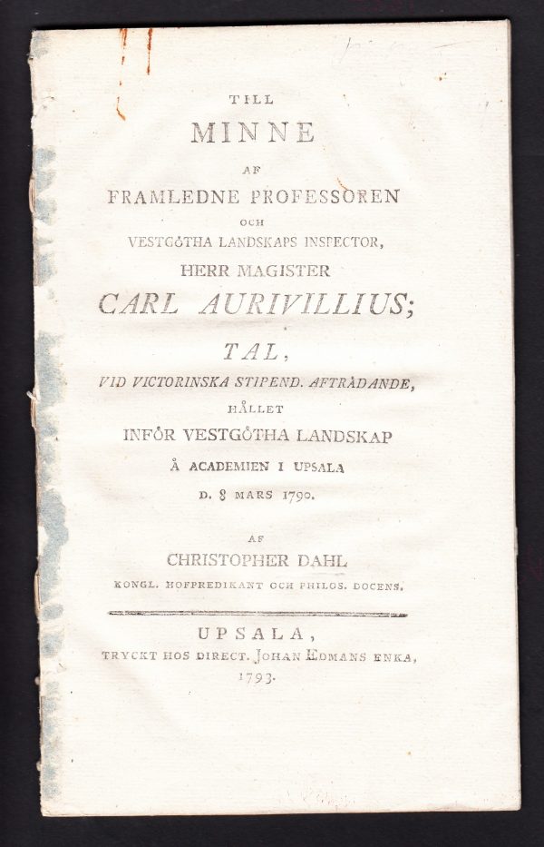 View cart “Till minne af framledne professoren och vestgötha landskaps inspector ... Carl Aurivillius; tal, vid victorinska stipend. afträdande, hållet inför vestgötha landskap å academien i Upsala d. 8 mars 1790. Af Christopher Dahl ...” has been added to your cart.