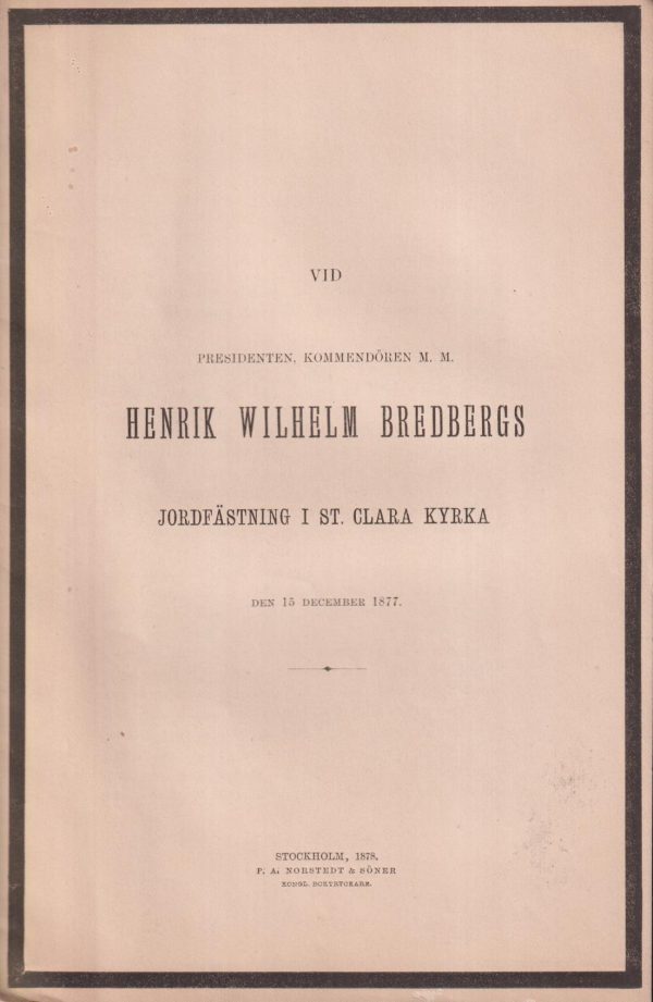 View cart “Vid presidenten, kommendören m.m. Henrik Wilhelm Bredbergs jordfästning i St. Clara kyrka den 15 december 1877.” has been added to your cart.