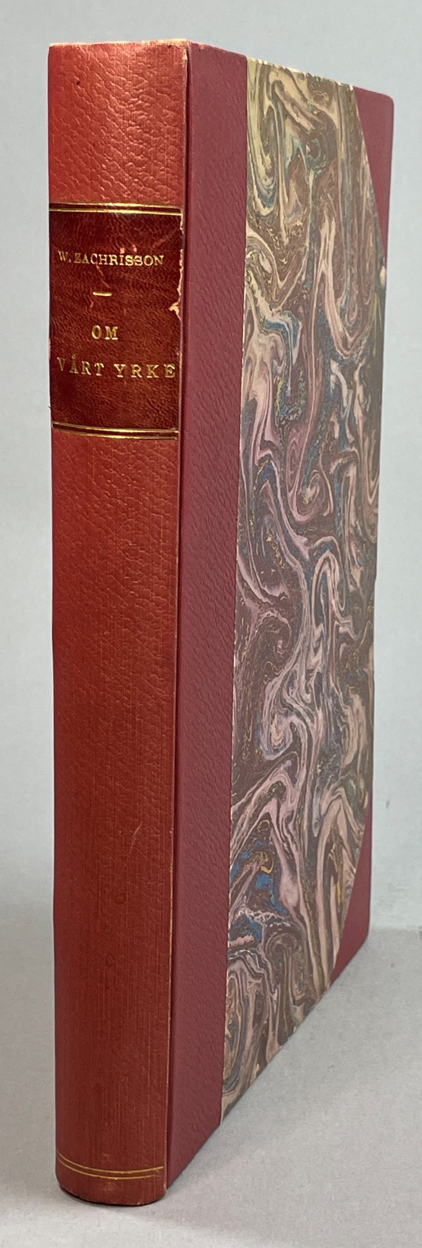 Tryckt i 250 numrerade exemplar, varav detta är nr 12. Innehåll: 1893 (Upprop till Sveriges Boktryckare); 1894 (Fackskolor; Linjearbeten); 1895 (Trefärgs-Fotokromotypi; Betalar sig fint tryck? Amerikansk satsteknik; om vartannat); 1896 (Om färg och färgtryck); 1897 (Om bokutstyrsel [I]; Konstnärliga affischer); 1899 (Om bokutstyrsel [II]); 1900 (Svensk bokindustriutställning i Göteborg år 1900); 1901 (Upprättandet av ett svenskt bokindustrimuseum i Stockholm; Den nye boktryckaren); 1902 (De moderna reproduktionssätten inom boktrycket; Gedanken über Buchausstattung; Återupplivandet av boktryckarekonsten i England); 1903 (Om yrkesstudier och yrkesundervisning; Tankar om bokutstyrsel. III); 1904 (Om fackskolor och utställningar); 1906 (Nationell stilriktning; Den svenska bokutstyrselns fiender; Tankar om bokutstyrsel. IV; Yrkesutbildning; Yrkesskicklighet; Yrkesval och arbetsglädje); 1907 (Tankar om bokutstyrsel; Reservation (i yrkesskolefrågan); Särskilt utlåtande (i yrkesskolefrågan); 1910 (Nya metoder; Heliogravyr för tidningstryck); 1912 (Allmänna kostnadskongresser för Sveriges boktryckare); 1913 (Hälsningstal; Vad vi vänta av Boktryckarekammaren); 1915 (Förr och nu. Minnen och tankar); 1916 (Några ord om kritik; Nästa steg; En ärorik boktryckerifirma (Benjamin Franklin); 1917 (Den förnämsta drivfjädern); 1918 (Efter tjugufem år); 1919 (Böcker och bokutstyrsel); 1920 (Efter tjugu år; Om placering av begynnelsebokstäver Begynnelsebokstävernas placering m.m.); 1921 (Initialernas placering; Faktorn).