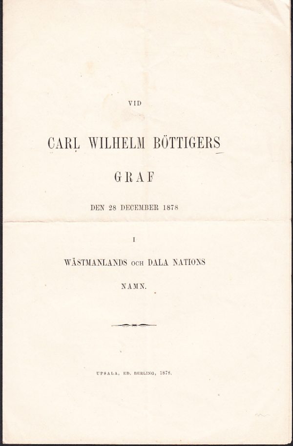 View cart “Vid Carl Wilhelm Böttigers graf den 28 december 1878 i Wästmanlands och Dala nations namn.” has been added to your cart.
