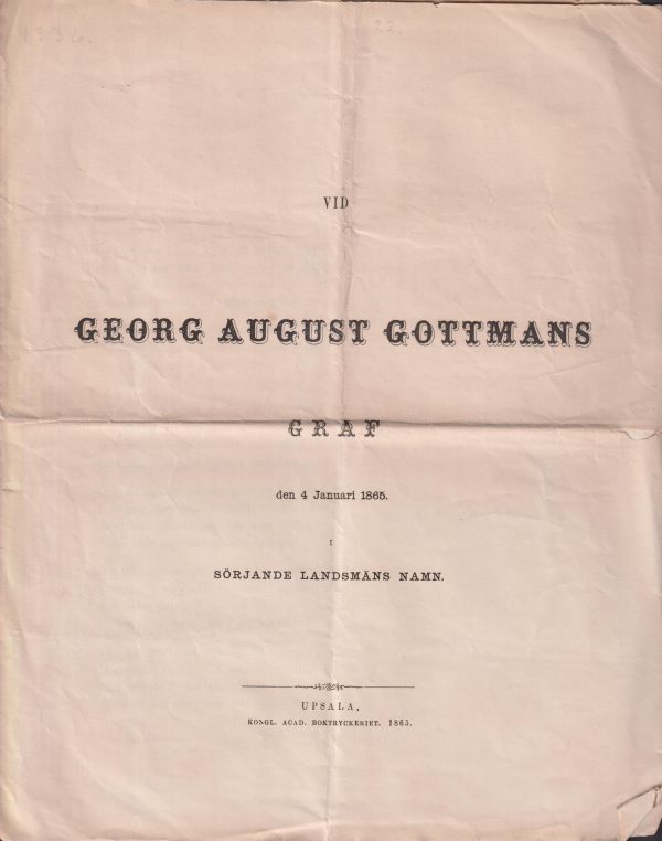 View cart “Vid Georg August Gottmans graf den 4 januari 1865 i sörjande landsmäns namn.” has been added to your cart.