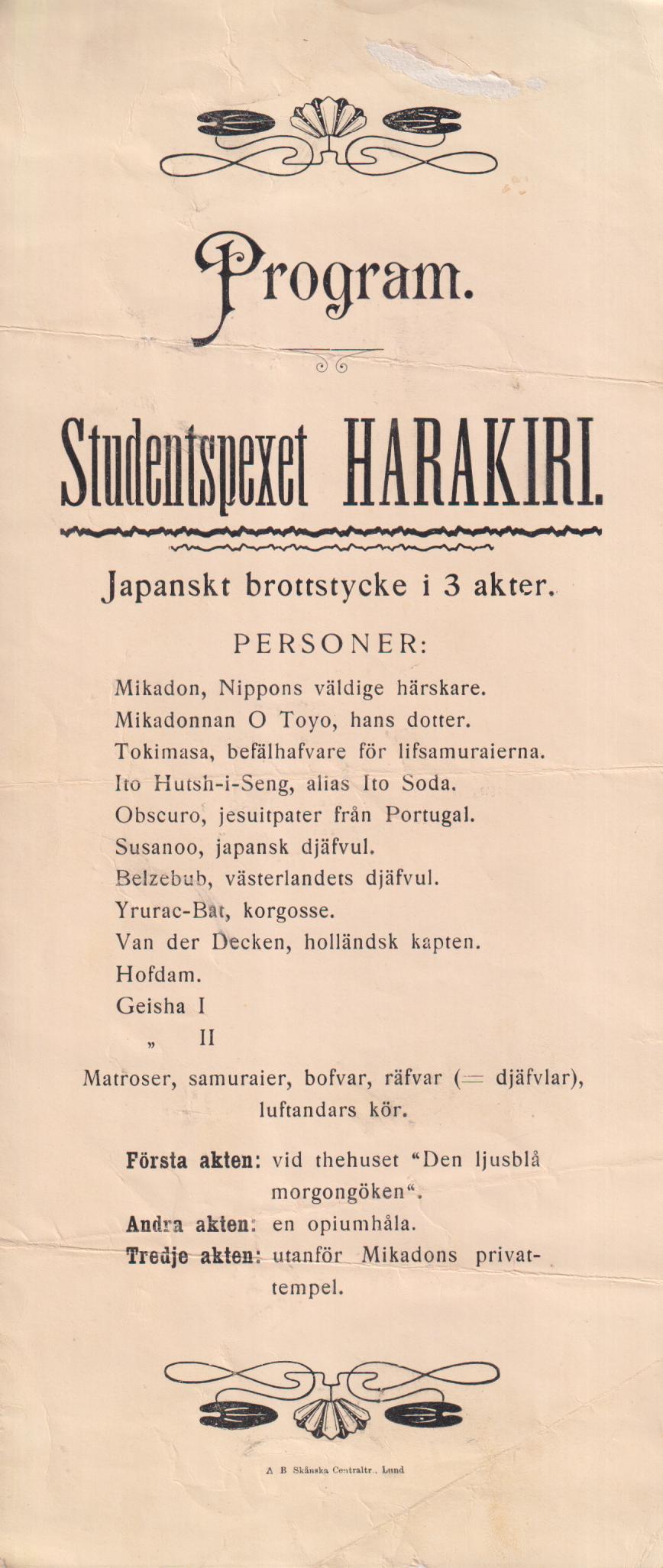 Tryckt på kritpapper. Japanskt brottstycke i 3 akter.