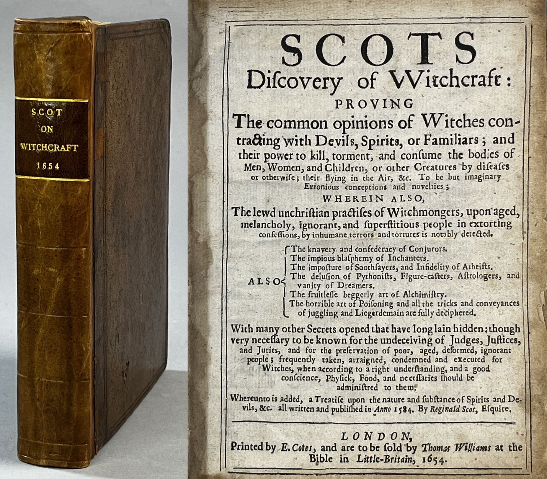 Robbins ‘The Encyclopedia of Witchcraft and Demonology’ p. 453-454. Kernot ‘Bibliotheca Diabolica’ p. 9 (1665 ed.). Third edition. The most important book in English to attack the witchcraft delusion. First published 1584, and reprinted in 1651, 1654, and 1665. The debate surrounding witchcraft continued, and The Discovery of Witchcraft remained an important text for those against the trials. So important, in fact, that scholars once believed King James I burned all existing copies in 1603 to prevent its spread. However, no credible evidence proves this happened. The second edition didn’t appear until 1651.