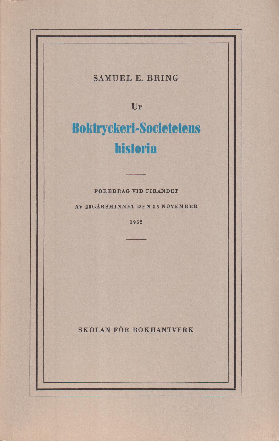 Ur Boktryckeri-societetens historia. Föredrag vid firandet av 200-årsminnet den 25 november 1952. [Utg. av] Skolan för bokhantverk.