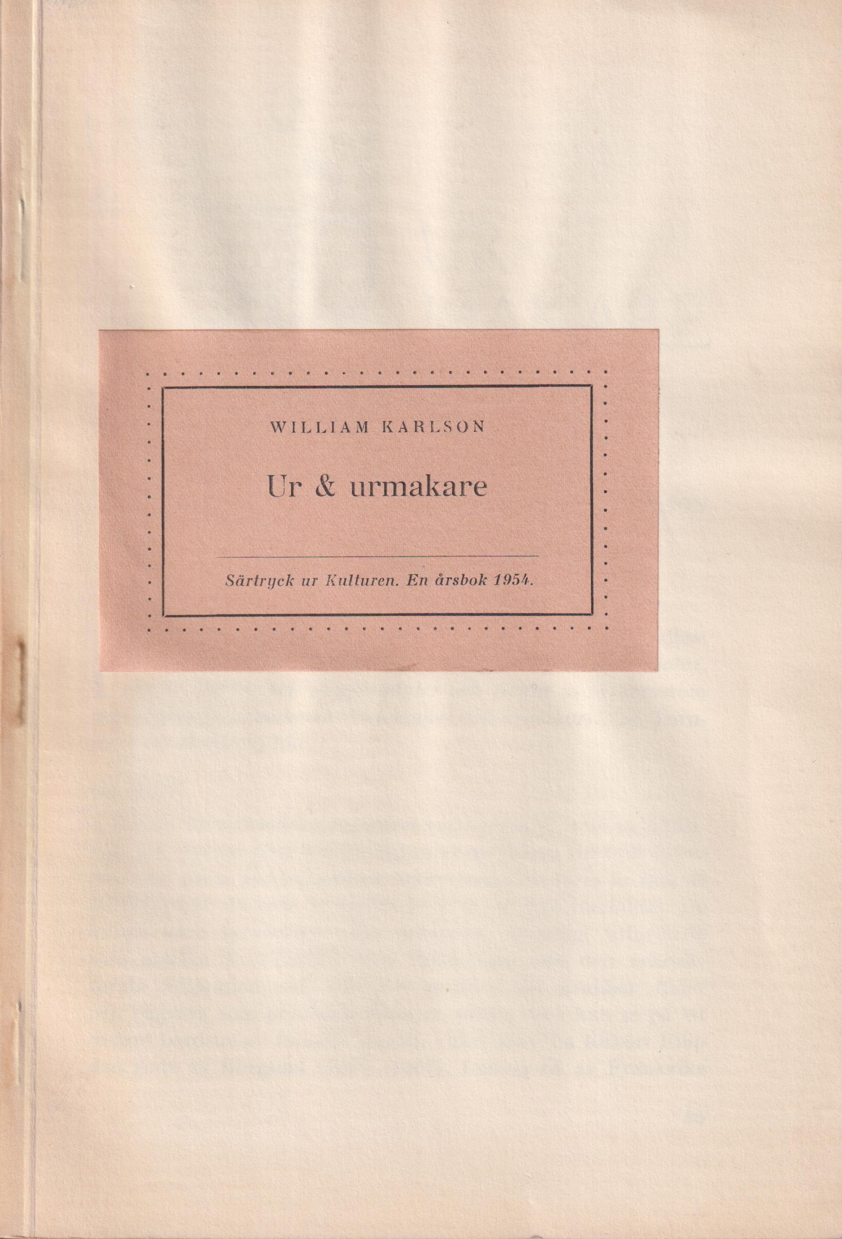 Särtryck ur ‘Kulturen. En årsbok 1954’.