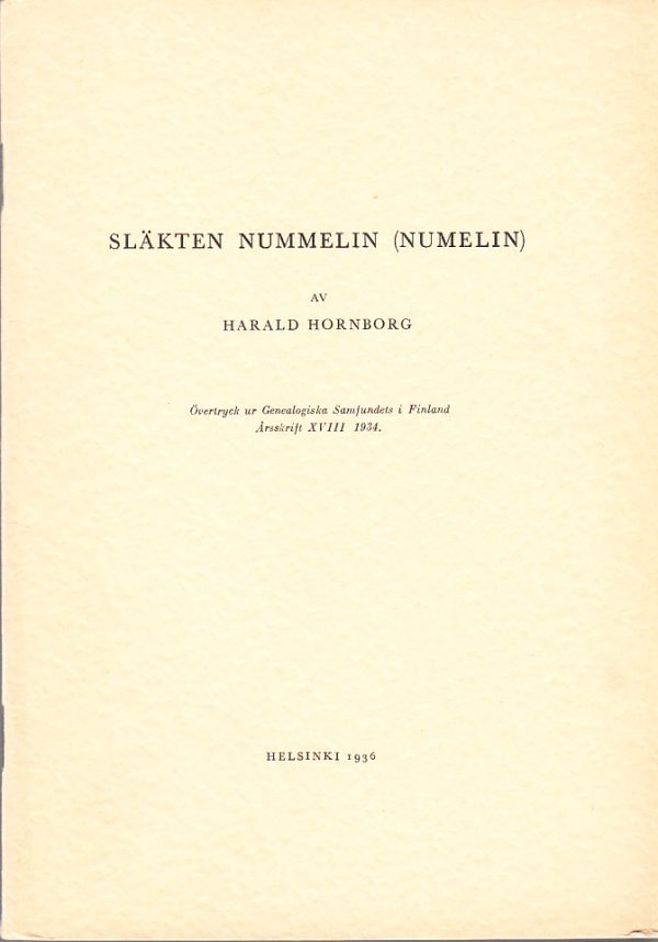 View cart “Släkten Nummelin (Numelin). Övertryck ur Genealogiska Samfundets i Finland Årsskrift XVIII 1934 [= omslagstitel].” has been added to your cart.